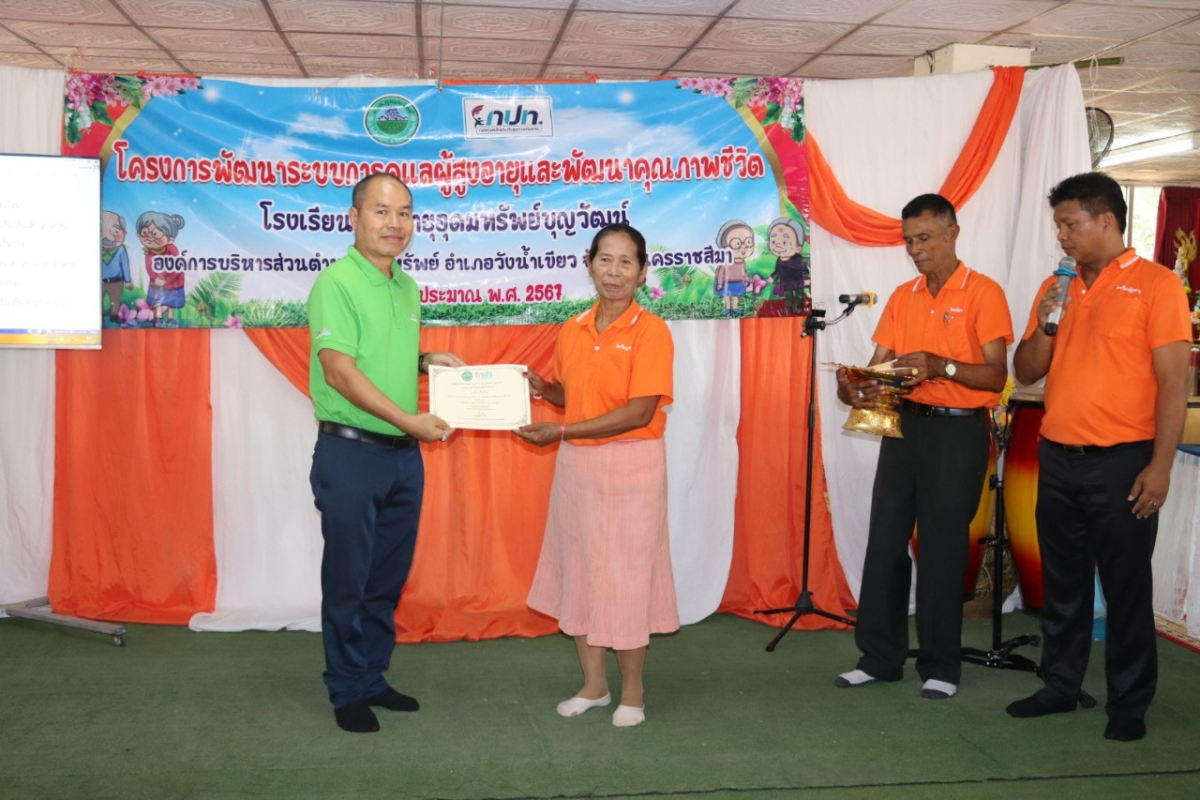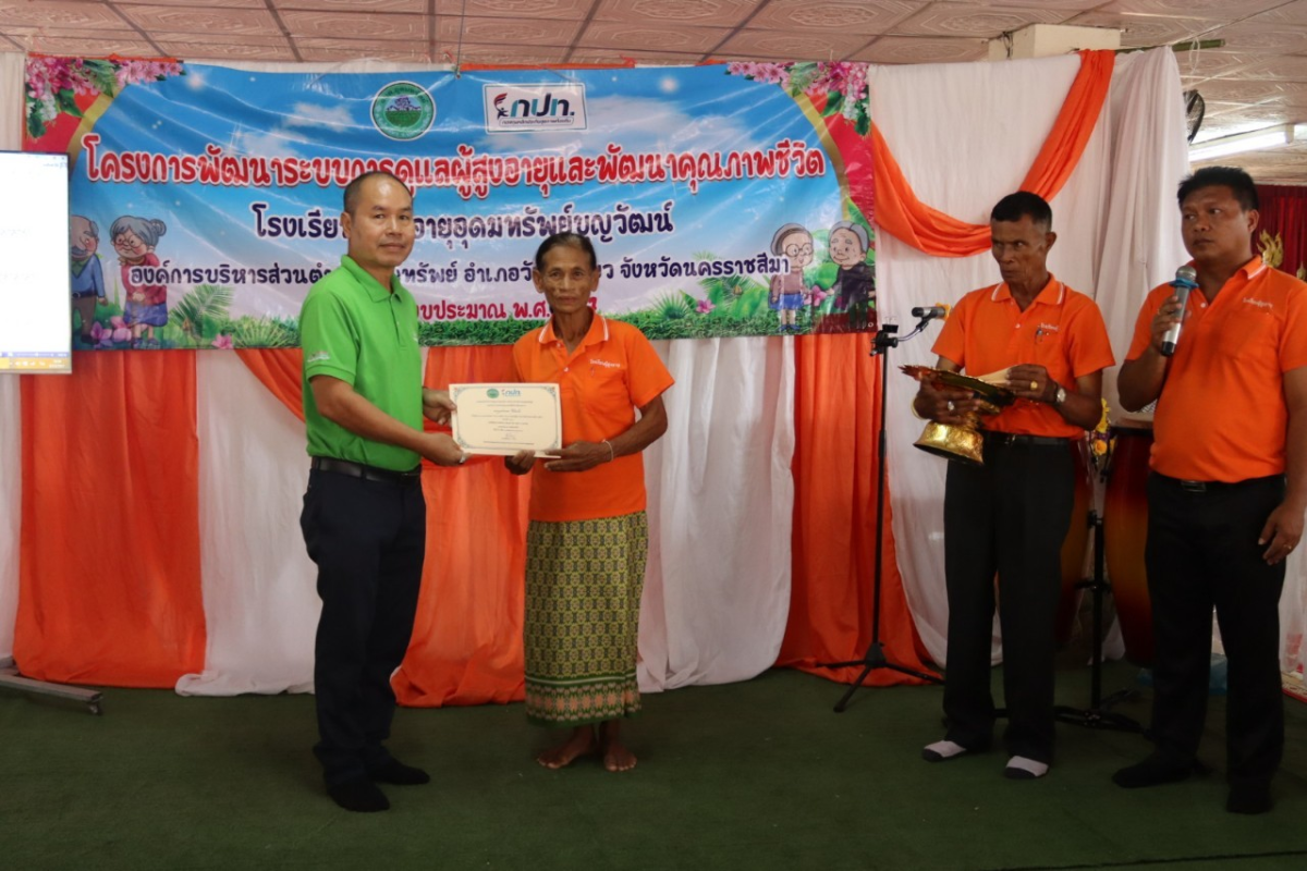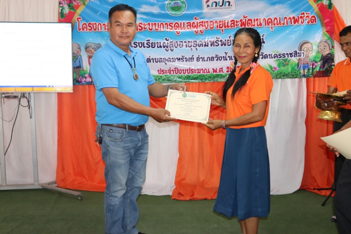 วันที่ 31 พฤษภาคม พ.ศ.2567 โครงการพัฒนาระบบการดูแลผู้สูงอายุและพัฒนาคุณภาพชีวิต โรงเรียนผู้สูงอายุอุดมทรัพย์บุญวัฒน์ ประจำปีงบประมาณ พ.ศ.2567 นายชัยนาถ จรกิ่ง นายกองค์การบริหารส่วนตำบลอุดมทรัพย์ ประธานในพิธีปิดโครงการฯ พร้อมด้วยคณะผู้บริหาร และนายตรัยรัตน์ คล้ายกิ่ง ประธานสภาองค์การบริหารส่วนตำบลอุดมทรัพย์ พร้อมด้วยสมาชิกสภาองค์การบริหารส่วนตำบลอุดมทรัพย์ ร่วมพิธีปิด และกิจกรรมวันปัจฉิมนิเทศ พร้อมมอบใบประกาศนียบัตร ณ วัดศิริมังคลาราม(วัดโนนเหลื่อม) ต.อุดมทรัพย์ อ.วังน้ำเขียว จ.นครราชสีมา