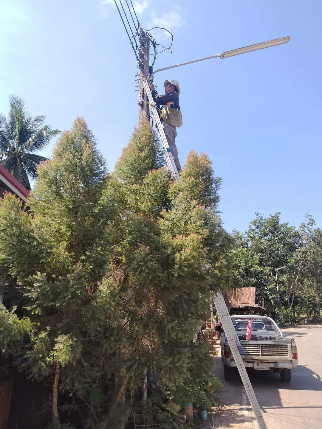 วันที่ 22 ธันวาคม พ.ศ.2566 นายชัยนาถ จรกิ่ง นายกองค์การบริหารส่วนตำบลอุดมทรัพย์ มอบหมายให้เจ้าหน้าที่งานไฟฟ้า กองช่าง องค์การบริหารส่วนตำบลอุดมทรัพย์ ดำเนินการซ่อมแซมไฟฟ้าส่องสว่าง ภายในหมู่บ้านโนนสง่า หมู่ที่ 13 ต.อุดมทรัพย์ อ.วังน้ำเขียว จ.นครราชสีมา
