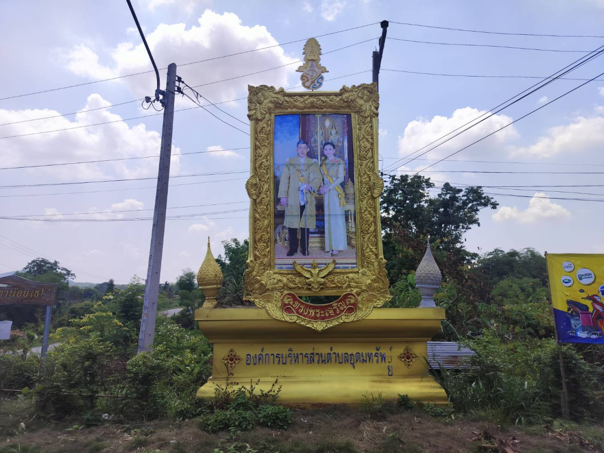 ดำเนินการติดตั้งพระบรมฉายาลักษณ์เฉลิมพระเกียรติ พระบาทสมเด็จพระปรเมนทรรามาธิบดีศรีสินทรมหาวชิราลงกรณ มหิศรภูมิพลราชวรางกูร กิติสิริสมบูรณอดุลยเดช สยามินทราธิเบศรราชวโรดม บรมนาถบพิตร พระวชิรเกล้าเจ้าอยู่หัว รัชกาลที่ 10 ที่ฉายกับสมเด็จพระนางเจ้าสุทิดา พัชรสุธาพิมลลักษณ พระบรมราชินี บริเวณทางแยกบ้านหัวเขาทอง หมู่ที่ 15