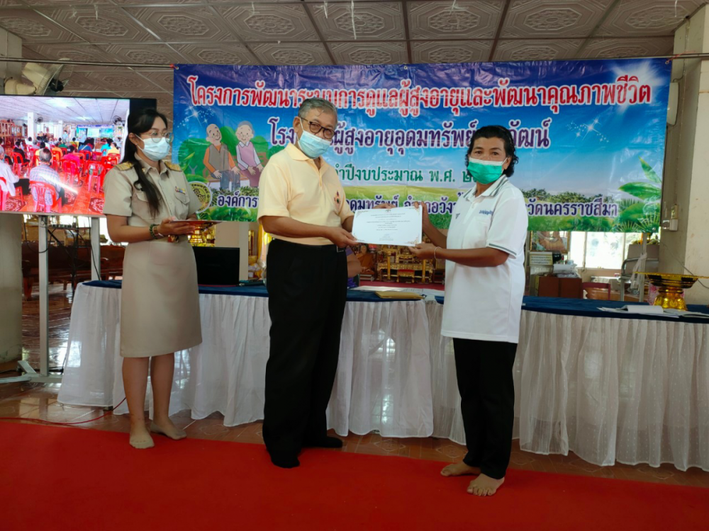 รวมถึงเจ้าหน้าที่กองสาธารณสุขและสิ่งแวดล้อมและผู้ทรงคุณวุฒิ/คณะทำงานโครงการพัฒนาระบบการดูแลผู้สูงอายุและพัฒนาคุณภาพชีวิต(โรงเรียนผู้สูงอายุอุดมทรัพย์บุญวัฒน์)ตำบลอุดมทรัพย์ ดำเนินการมอบประกาศเกียรติคุณให้แก่นักเรียนผู้สูงอายุ /ผู้ทรงคุณวุฒิ/ผู้ทำคุณประโยชน์แก่โรงเรียนผู้สูงอายุอุดมทรัพย์บุญวัฒน์ ณ วัดศิริมังคลาราม (วัดบ้านโนนเหลื่อม) ตำบลอุดมทรัพย์ อำเภอวังน้ำเขียว จังหวัดนครราชสีมา