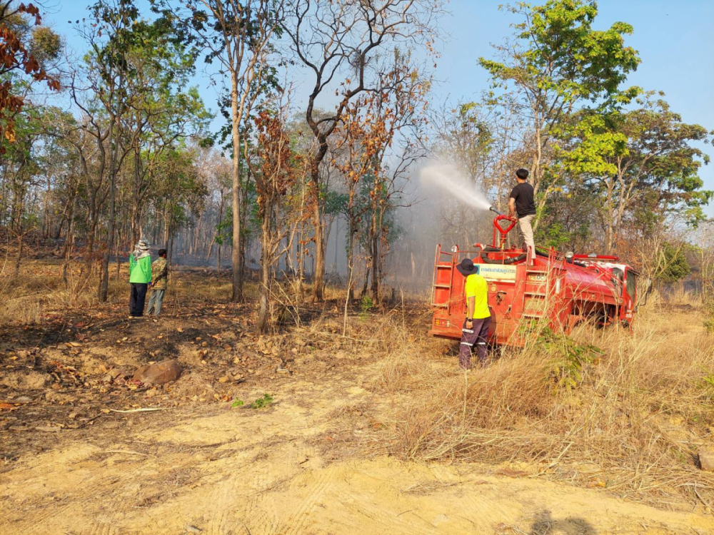 เจ้าหน้าที่งานป้องกันและบรรเทาสาธารณภัยองค์การบริหารส่วนตำบลอุดมทรัพย์ อำเภอวังน้ำเขียว จังหวัดนครราชสีมา เข้าระงับเหตุไฟป่า โดยนำเจ้าหน้าที่พร้อมด้วยรถดับเพลิงบรรทุกน้ำฉีดพ่นน้ำดับไฟป่า ร่วมกับผู้นำชุมชนและประชาชนในพื้นที่ ร่วมระงับเหตุไฟป่าบริเวณป่าชุมชนหมู่บ้านซับพลู หมู่ที่ 16