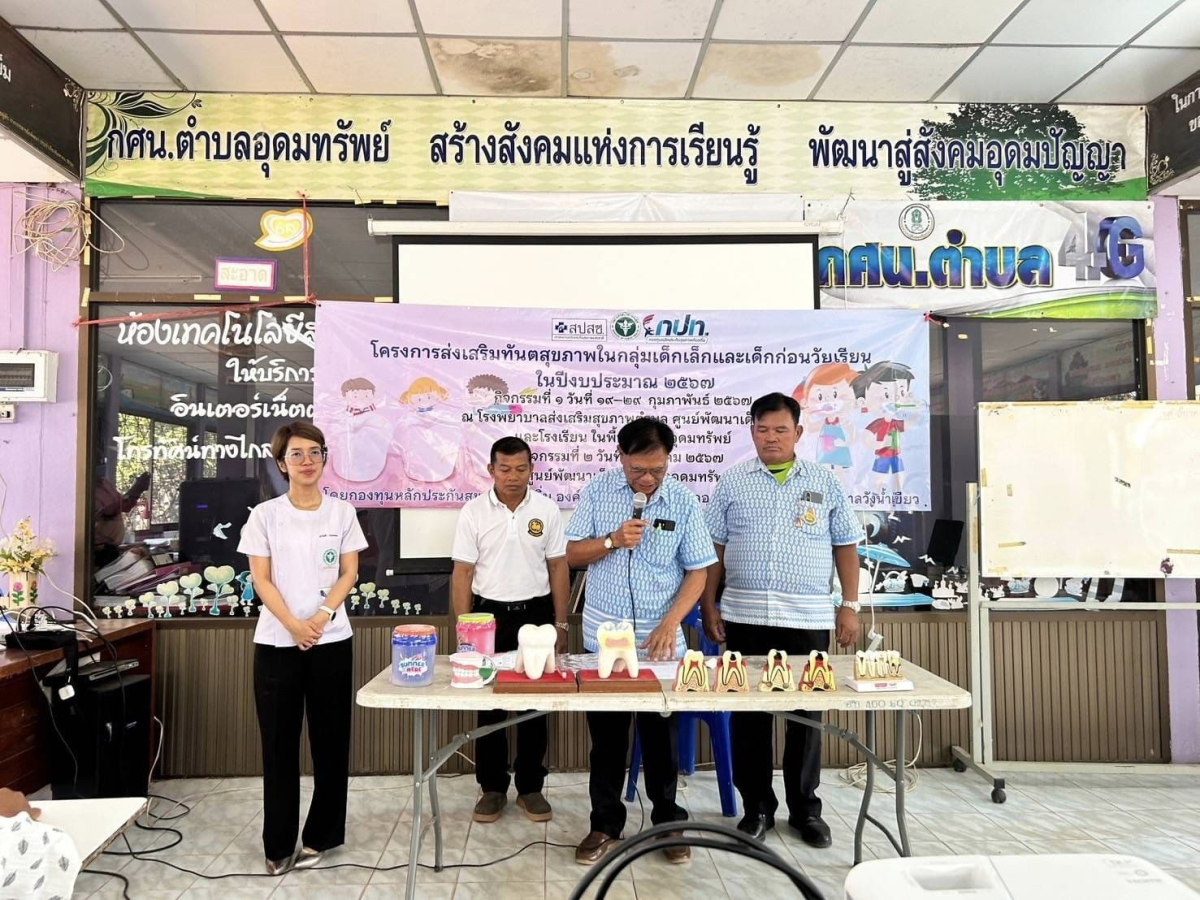 นายชัยนาถ จรกิ่ง นายกองค์การบริหารส่วนตำบลอุดมทรัพย์ มอบหมายให้นายสนิท แผ่วจะโปะ รองนายกองค์การบริหารส่วนตำบลอุดมทรัพย์ ประธานเปิดโครงการส่งเสริมทันตสุขภาพในกลุ่มเด็กเล็กและเด็กก่อนวัยเรียน ในปีงบประมาณ 2567 ณ ห้องศูนย์การเรียนรู้นอกระบบและการศึกษาตามอัธยาศัยตำบลอุดมทรัพย์ อำเภอวังน้ำเขียว จังหวัดนครราชสีมา